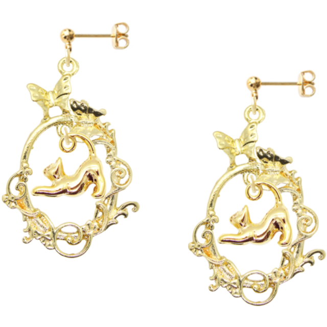 ねこがちょうちょを追いかけて 遊んでいるところをイメージしたピアスです。