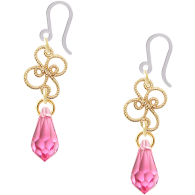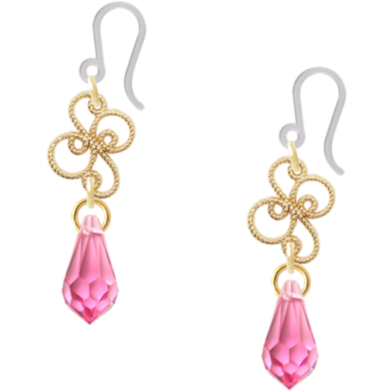 少し角のあるドロップ型の スワロフスキーピンクを 樹脂フックピアスに付けました。