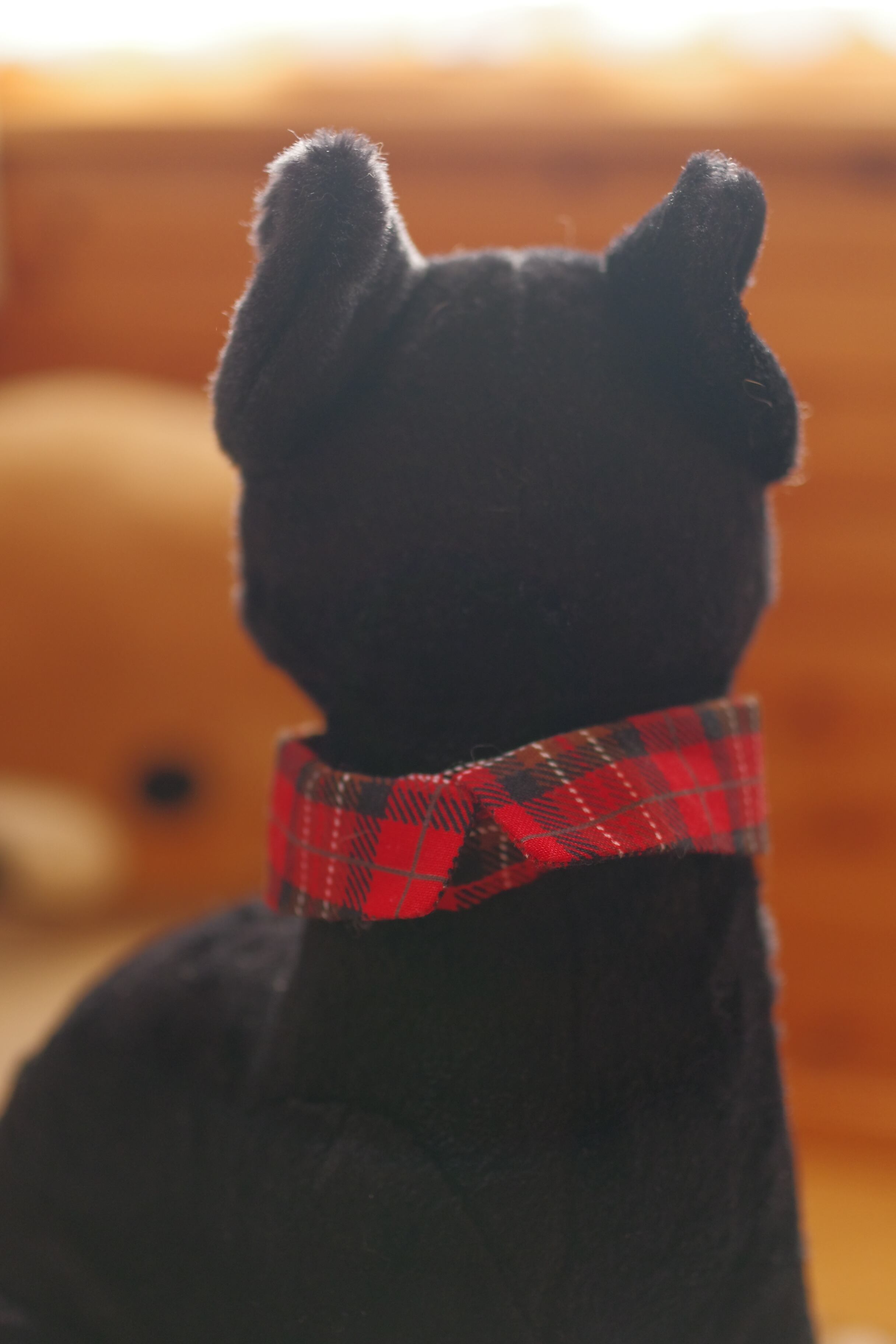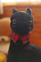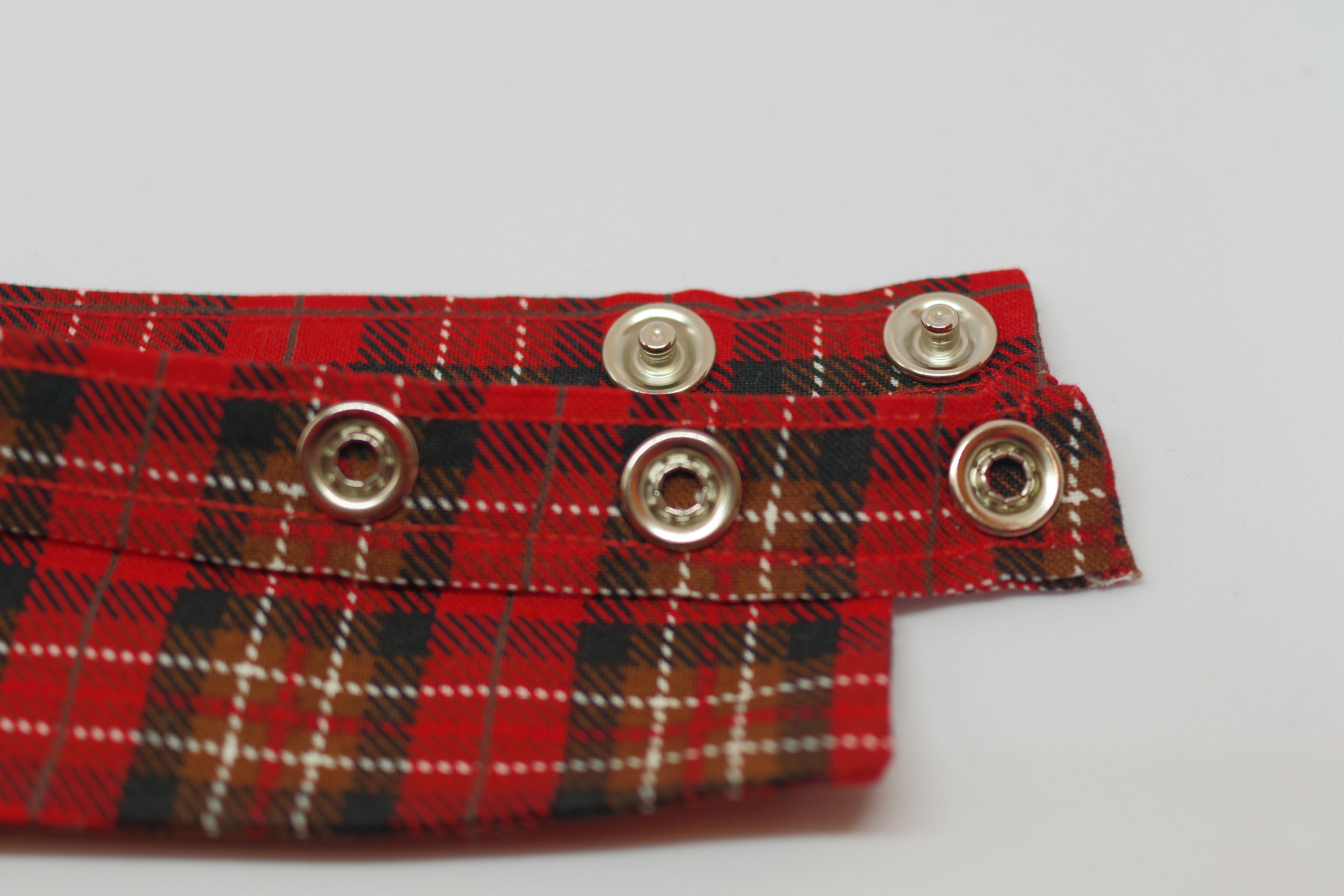 赤のチェック柄で襟と紐を制作しました。