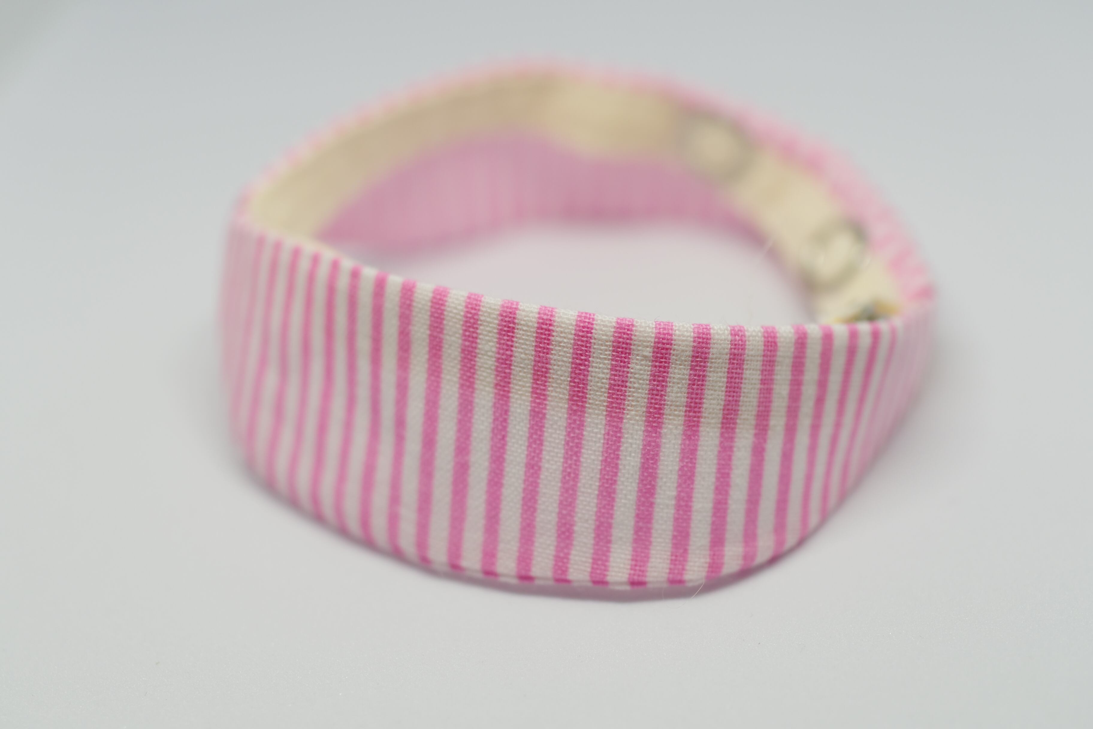 ストライプ柄の丸襟首輪(ピンク)