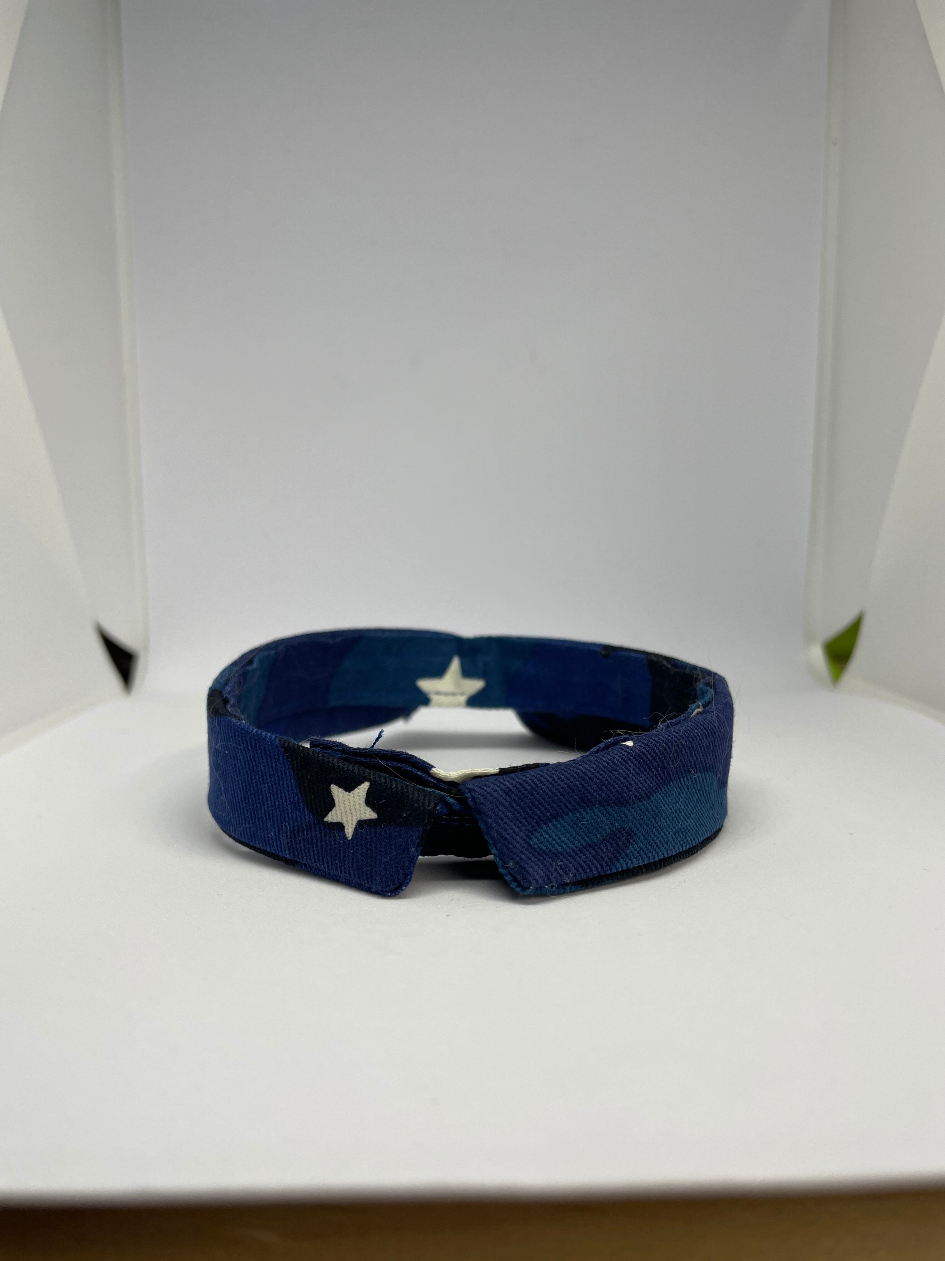 愛犬の首周りにフィットし迷彩柄が彩る装いは、まるでアウトドアにいるような気分に